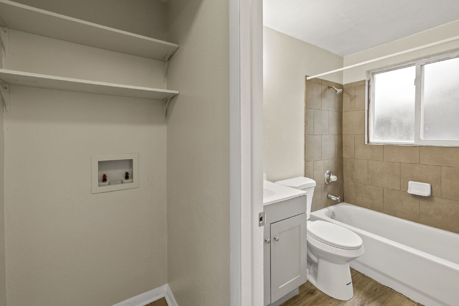 Additional features include shared in building washer and dryer, no HOA, and off street rear parking with two assigned spaces. Please note there is no covered carport.